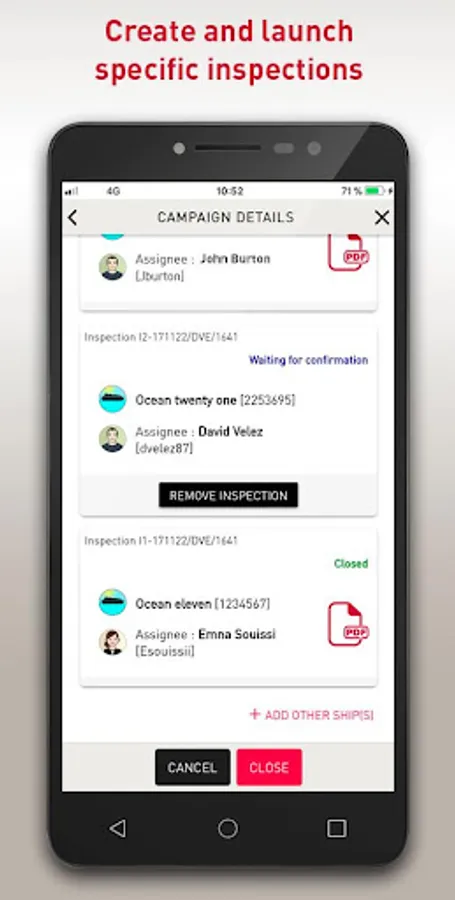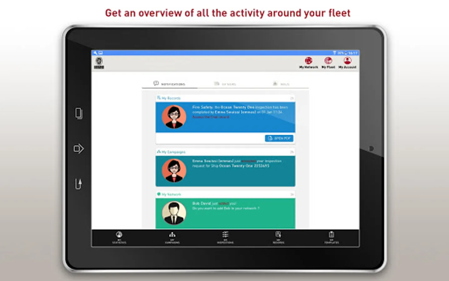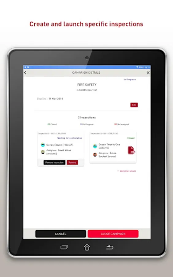 | Create targeted campaigns on your whole fleet and receive inspection results from each ship.