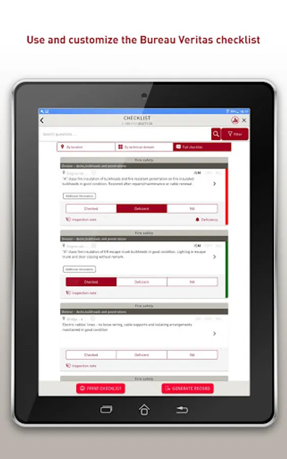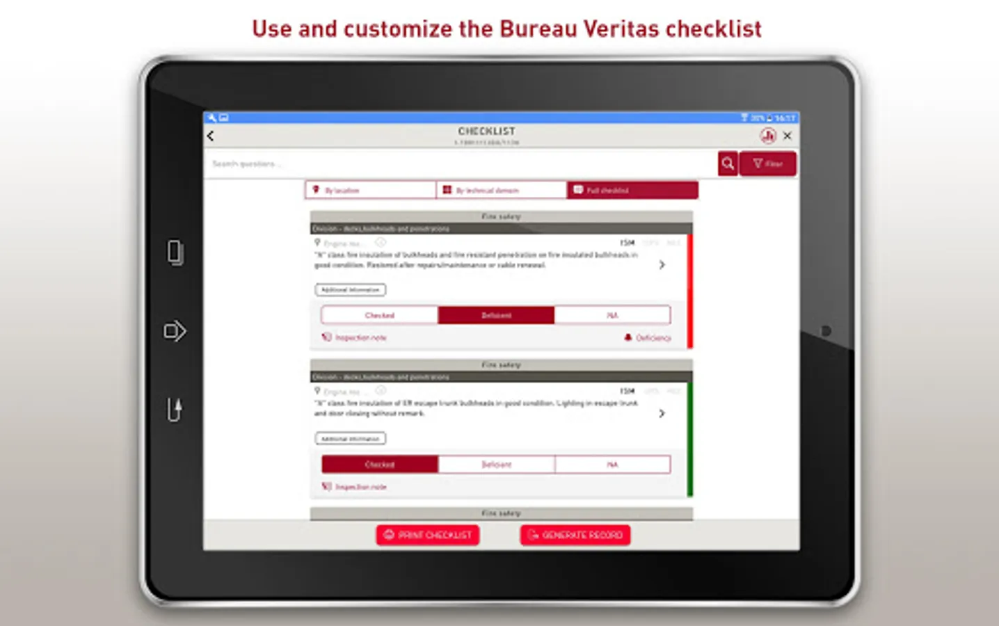 *Use the Bureau Veritas built-in, and up-to-date, checklist