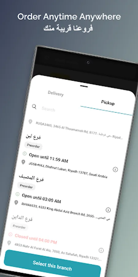 - pickup the order from the branch