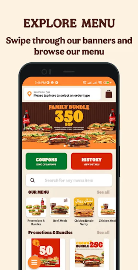 Here’s just some of the features you’ll find in the BURGER KING® Egypt Home Delivery App: