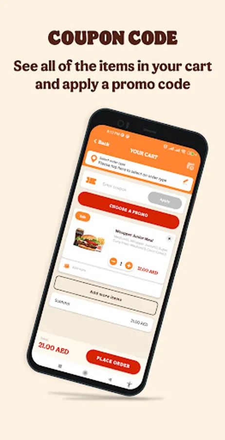 Here’s just some of the features you’ll find in the BURGER KING® UAE Home Delivery App: