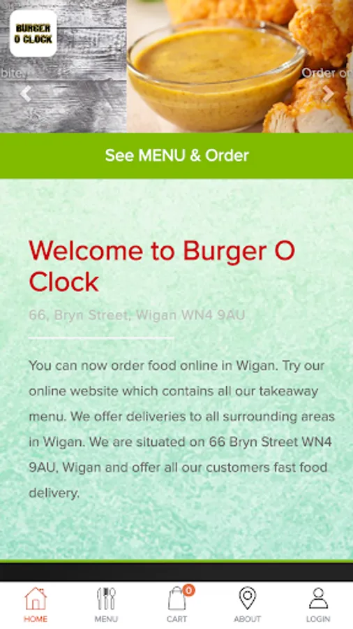 Burger O Clock is based in 66 Bryn Street, Wigan, WN4 9AU. We aim to bring all of our customers the best value for money, services and food around, plus we are constantly aiming to improve our service in Wigan. You can now order food online. Try our online website which contains all our menu. We offer deliveries to all surrounding areas of Wigan. We offer all our customers fast food delivery. You can now order your favourite dish online and get fast home delivery. We are very particular about our service and quality to give our customers a better experience; which is why we are now proud to offer this fantastic online ordering website. You can even pay online and get your food delivered to your home in Wigan.