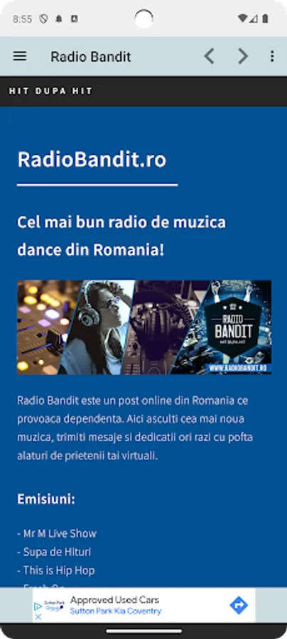 Radio Bandit is an online post from Romania addictive. You listen to the latest music, send messages and dedications or laugh out loud with your friends virtual.
