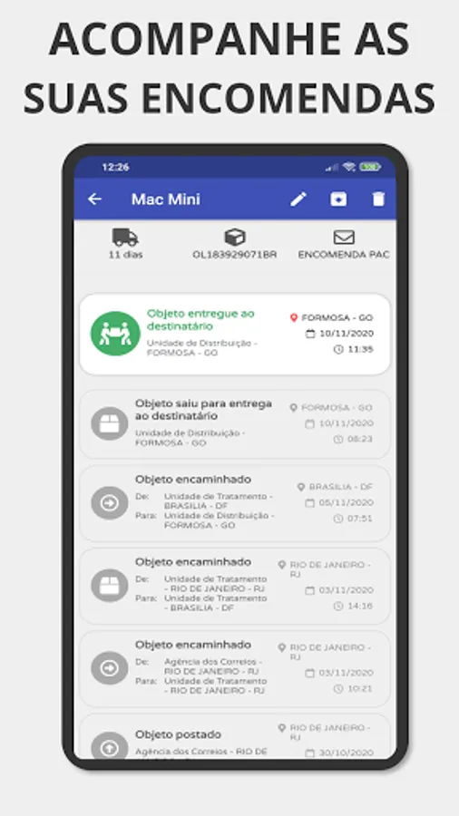Note: The data of this application are obtained directly from the official postal service of Brazil in real time.