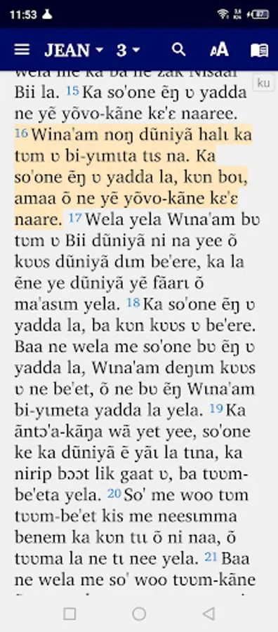This application presents to you the gospel of Mark translated into the Kusaal language spoken in south-central Burkina Faso and northern Ghana.