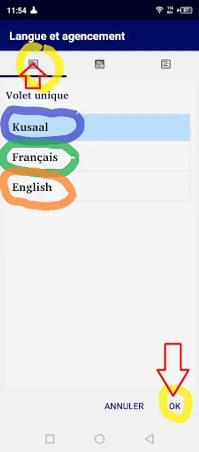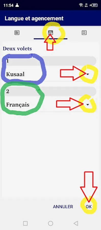 - "two panes" to display the Kusaal at the top and the French or English version at the bottom