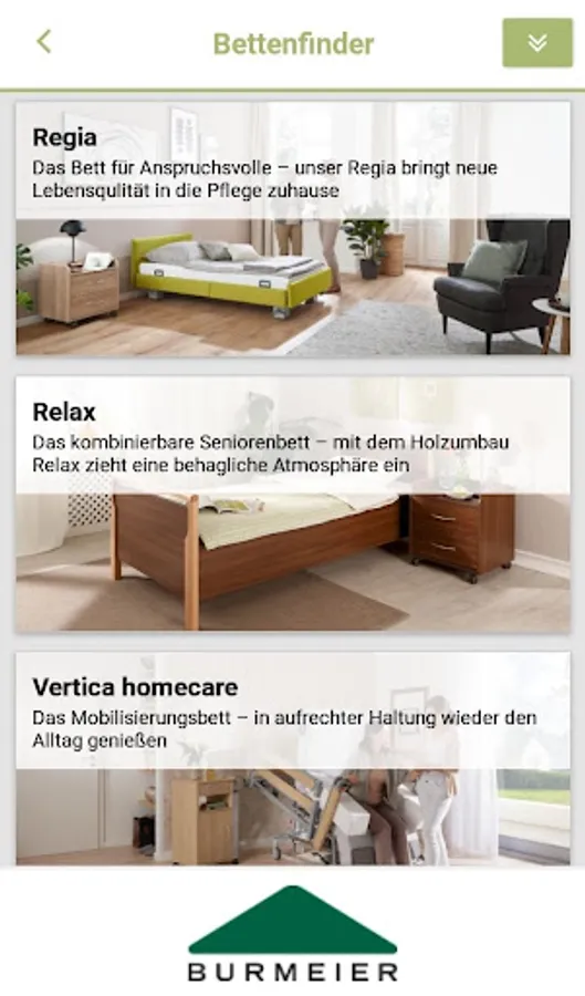 Do you or a relative need a home nursing bed? Do you advise customers in the medical supply trade about home care? Then the Burmeier app has interesting content for you.