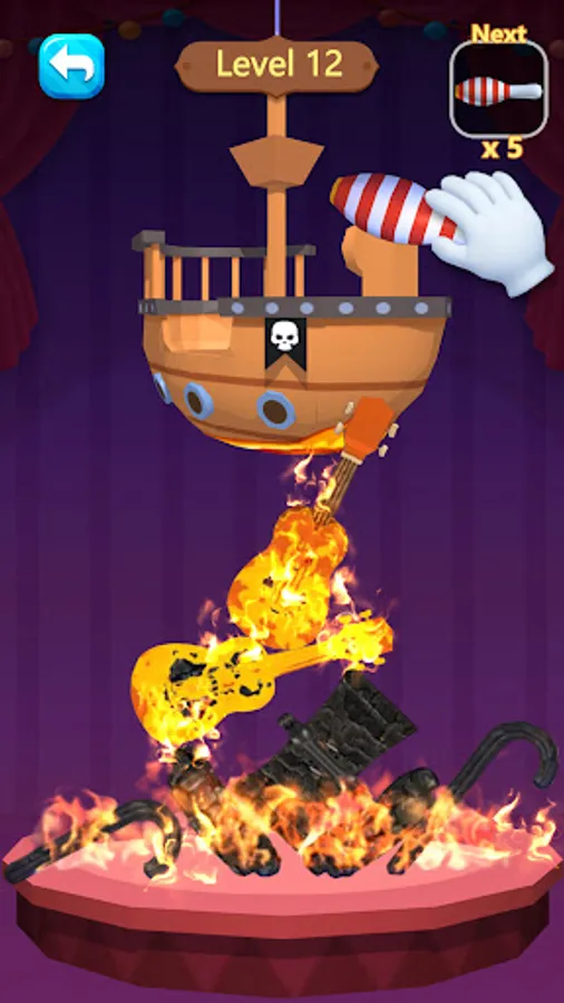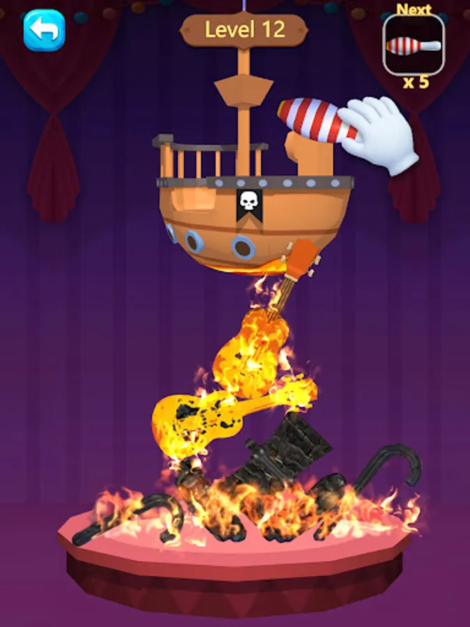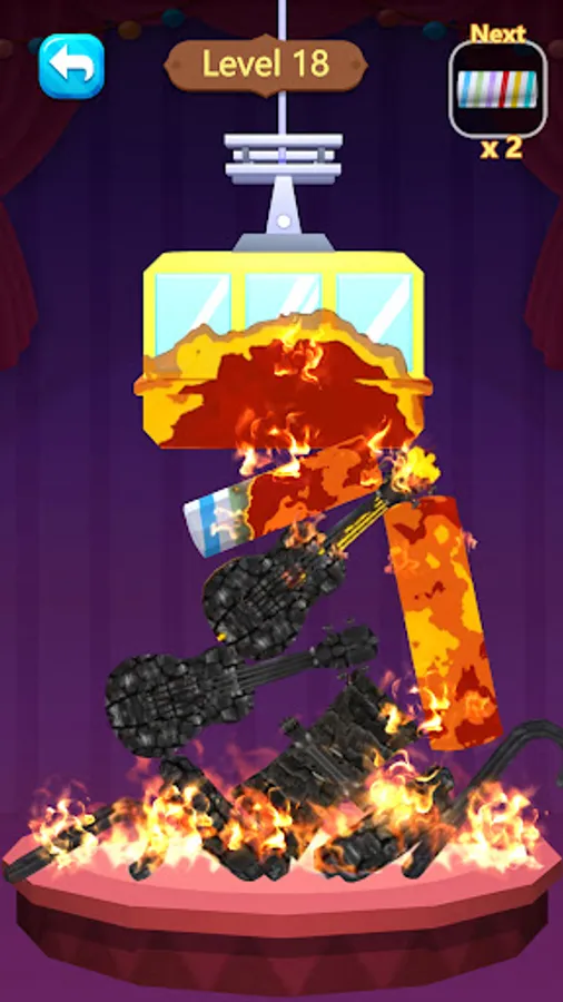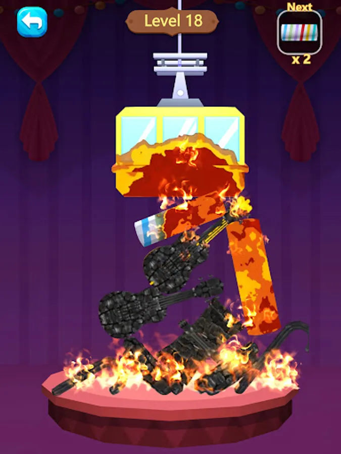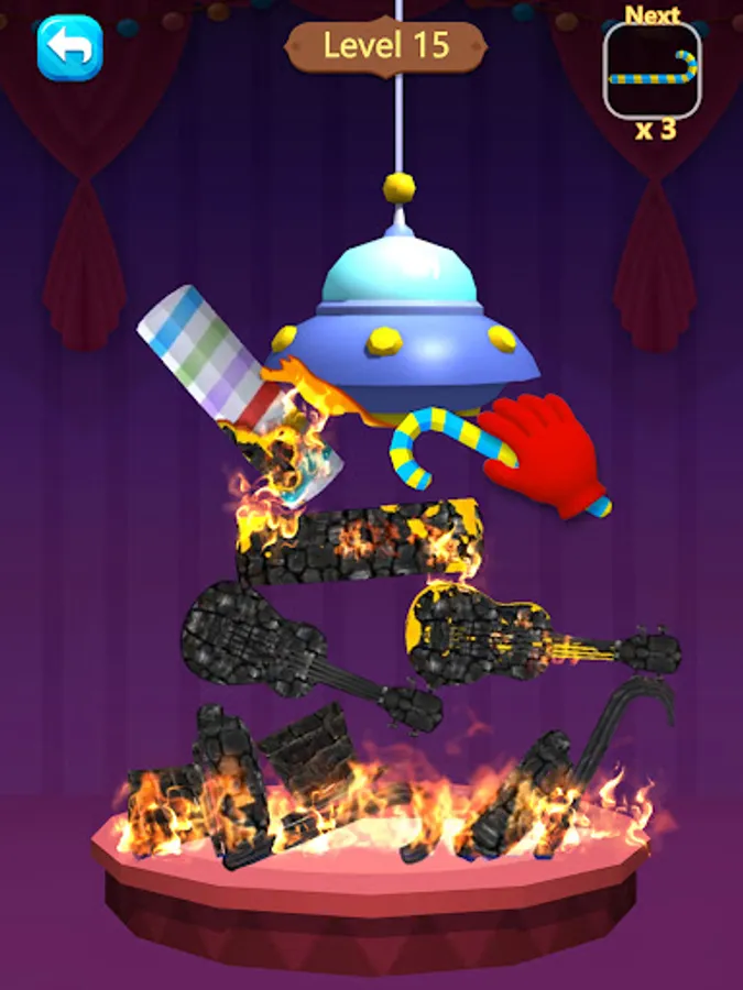Every time you start, you will be provided with props that can guide the flames. You need to use these blocks to guide the flames to burn the top item.
