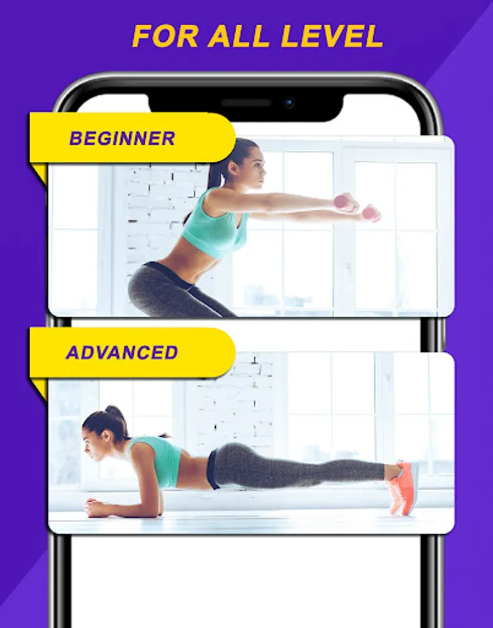 - Abs workout program with 3 different levels (beginners, intermediate, advanced) plan by specialist.