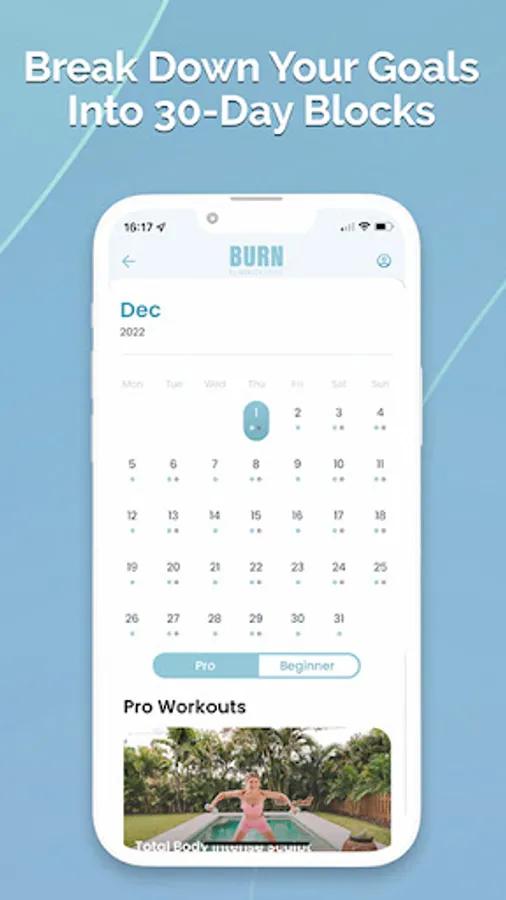 The BURN App teaches you this groundbreaking method, built upon by my years of experience in the fitness industry and helps you break down your goals into 30-day segments, making the big goals in life feel much less of a challenge.