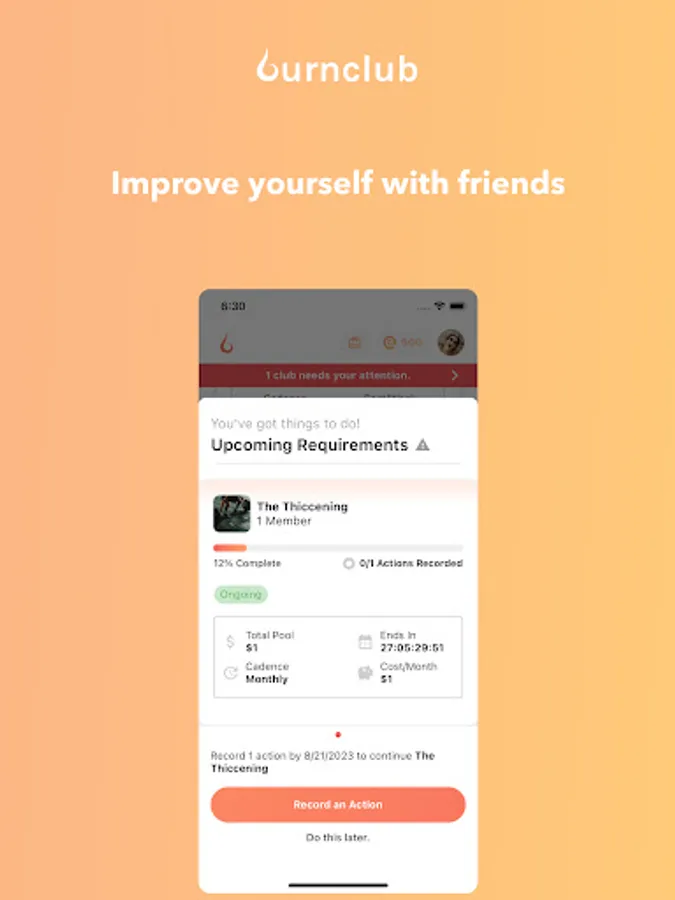 Throughout a club, fees are collected - only being returned at the successful completion of the club's duration. Once a club's duration has lapsed, all fees are returned to members who have completed the club successfully. Those who are unable to complete their clubs forfeit their commitment fees, which are ultimately split among the remaining, successful members.