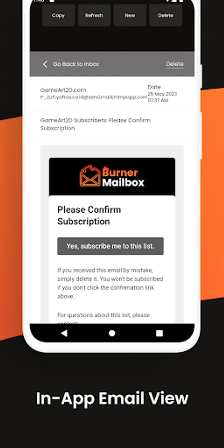➽ In-app emails view