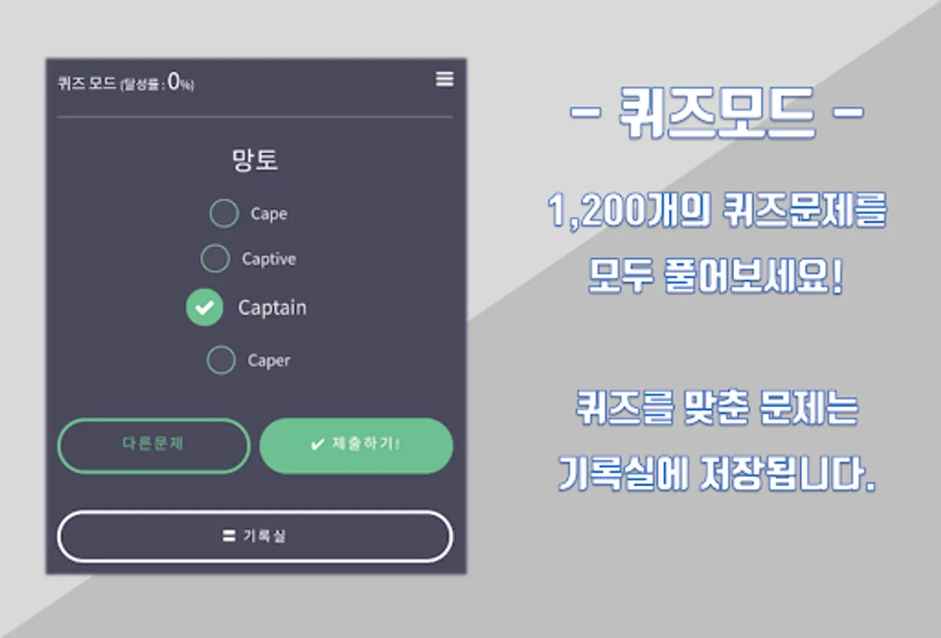 Quiz Mode-Increase your achievement rate by matching the word quiz.