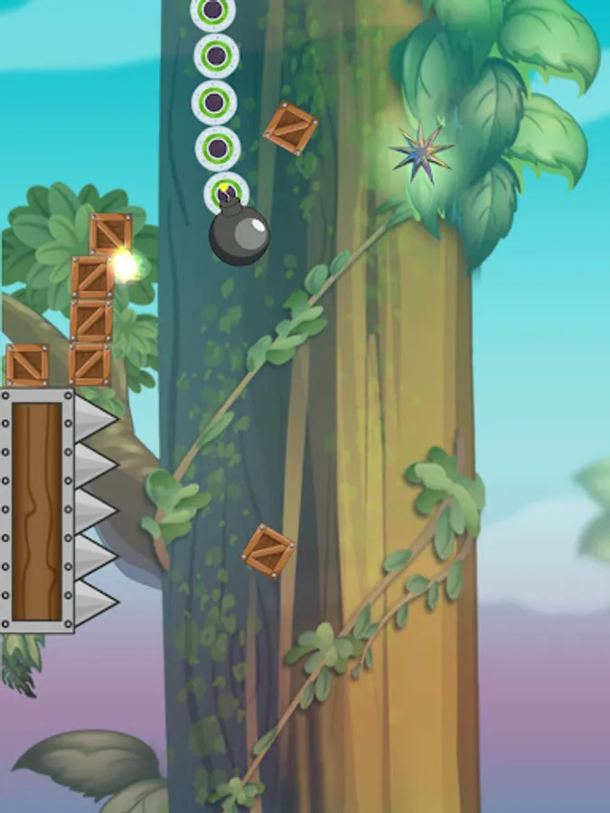 You control the Burning Dot. It can slide, move, cut, burn ropes where a bomb is attached and use the laws of physics to bring the bomb to the star. You can also push / move blocks, bricks, boxes and everything you have on hand in each level to bring the bomb to the rotating, shiny star.
