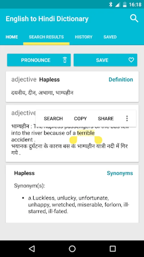English to Hindi Dictionary and Hindi to English Dictionary(हिन्दी शब्दकोश) a quick bilingual reference/guide works with meanings available for all English and Hindi words. Designed by passionate UI developers.