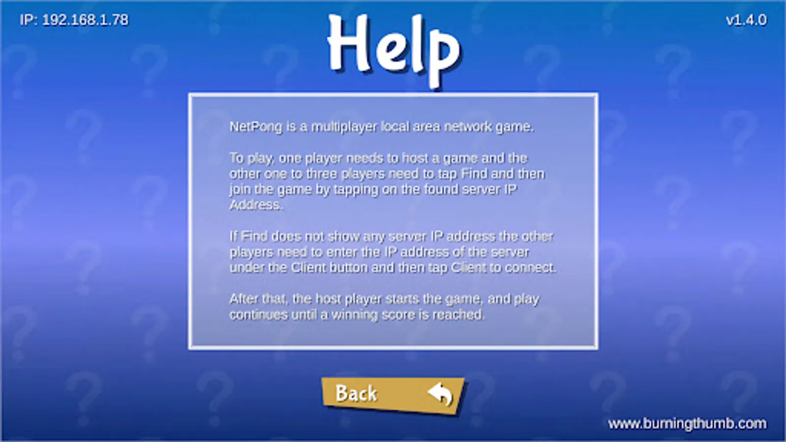 The other player(s) finds the hosted game on the network using the Find button and then join the game by tapping on its IP address OR if network discovery does not find the hosted game then the other players enter the IP address of the host and join the game by tapping the Connect button.