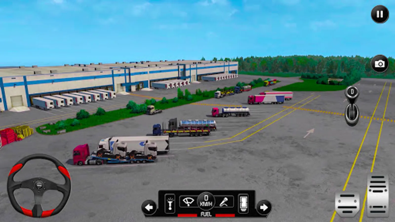 Press race button of US truck simulator trailer parking: drive game 2021 to move forward and brake to stop the vehicle or reverse.