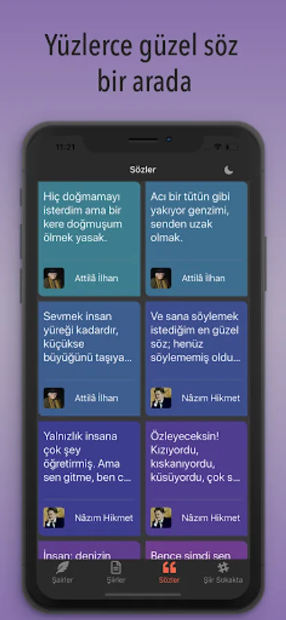 In this application, you can list the poets and read their words and poems, as well as list the posts from the poetry street movement. Moreover, our content continues to expand day by day.