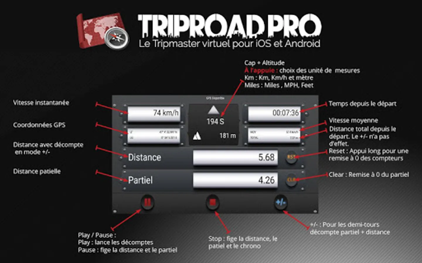 TripRoad is indispensable for navigation 4X4 Road Book,bike,Historic rallye odometer.