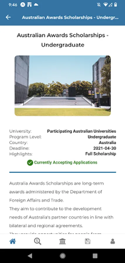 Ideal scholarship app for international students. Bursary puts together all of the top-ranked international scholarships from around the world. You can browse through scholarships and submit applications through the official scholarship pages for opportunities in the UK, US, Australia, Canada, New Zealand and more.
