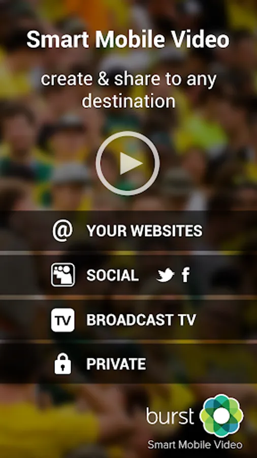 Whether you are a broadcaster, reporter, business owner, blogger, publisher, event organizer or consumer, Burst helps you create authentic mobile video clips that auto-upload, get smartly curated and are immediately available to share or publish to the destination of your choice - private bubbles, websites, social media, blogs, or broadcast TV.