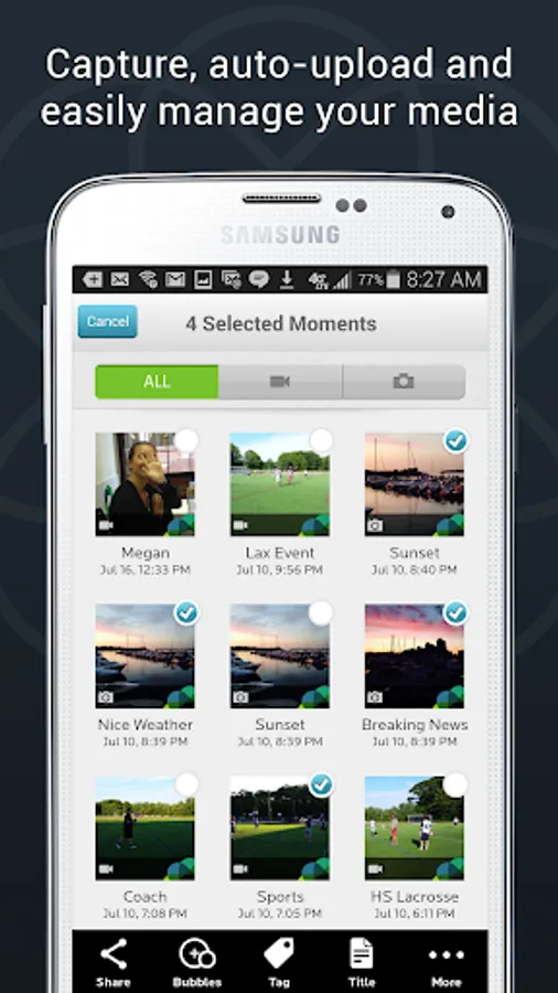 ✔ Multi-Select options to quickly choose multiple media items to title, tag, delete, or even add to a new Bubble