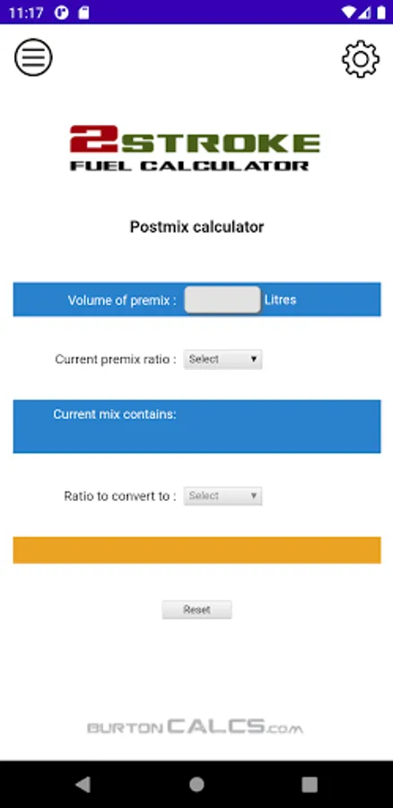 2T Calculator can also be used to mix two stoke fuel to any number of ratios in metric, UK Gallons and US Gallons.