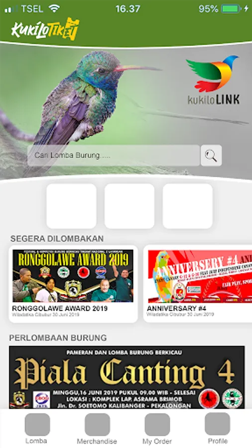 kukiloTIX adalah sistem untuk membantu pelaksanaan event lomba burung mulai dari pemesanan tiket, pemeriksaan validitas tiket, sampai dengan verifikasi pelaksanaan lomba.