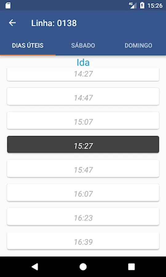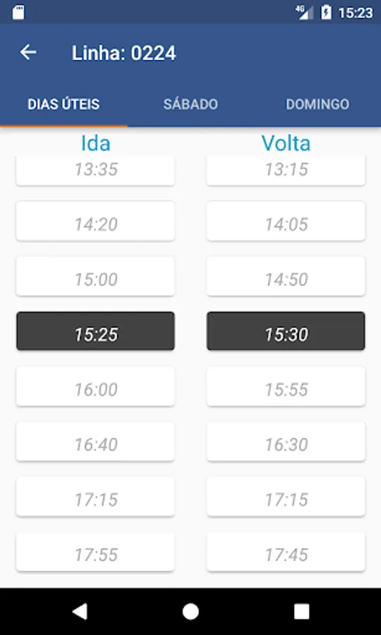 When you open the schedule screen the next exit comes highlighted and the list selected according to the day of the week.