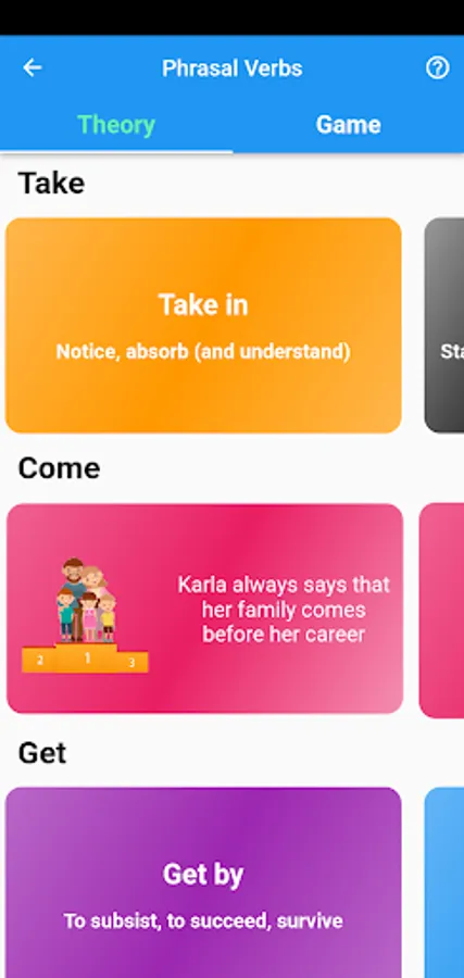 In addition, you can learn the most common phrasal verbs with the help of a memorization mini-game within the application at no cost.