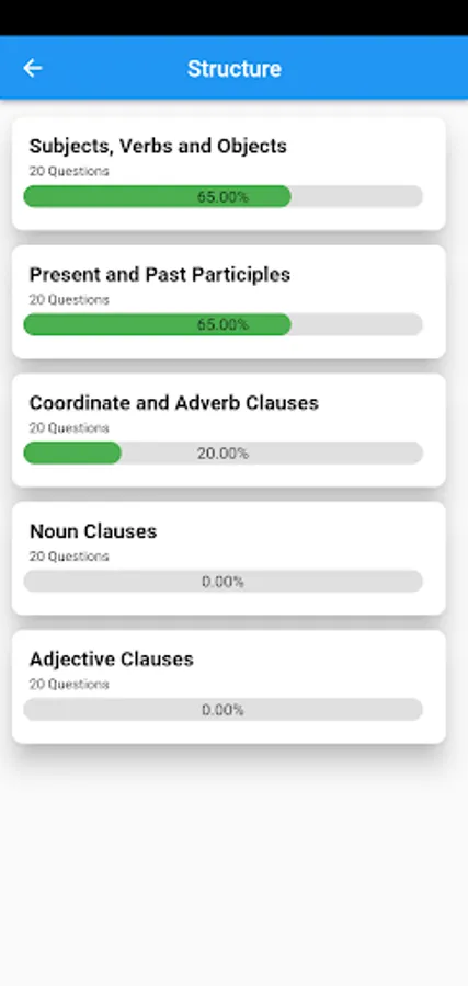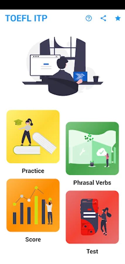 With TEST TOEFL ITP you can study completely FREE all the Grammar, Listening and Reading topics that you need to pass the TOEFL exam.