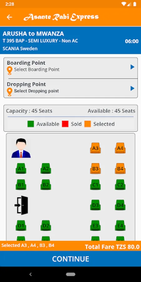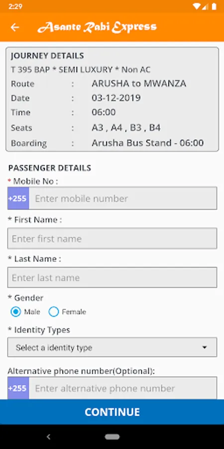 Asante Rabi Express bus ticketing system on your mobile. Book your tickets with simplicity from your phone.