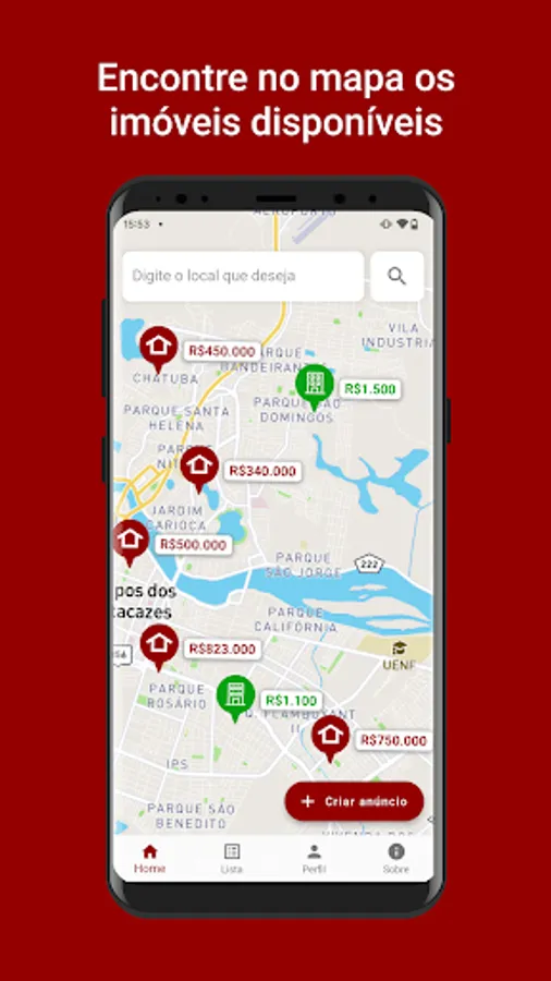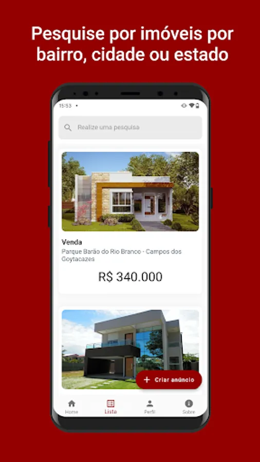 Buscalar is a real estate listing mobile app where users can view and create listings for both sale and rent. The application facilitates the visualization of ads through a map, where it is possible to view real estate ads around the user's current position or a chosen position. It was developed for the discipline of Object Oriented Paradigm for Software Development at Universidade Estadual do Norte Fluminense Darcy Ribeiro (UENF).