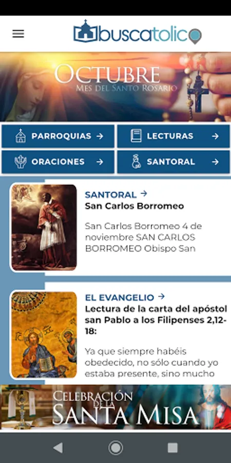 The App that puts in your hands the best tool for your Catholic Faith, the Gospel of the day, the Holy Church, the prayers of Our Church and the parish locator.