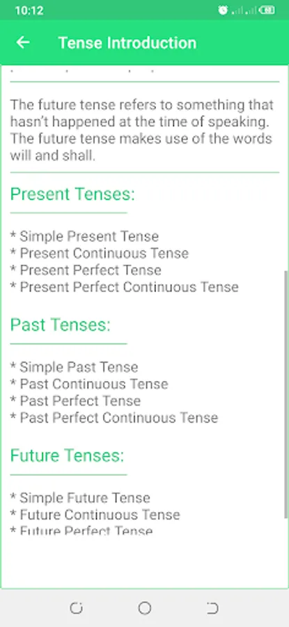 English Tense free app you get Structure of all Tenses, Example of all Tenses and English Tense Practice. English Tenses Individual Practice, Random English Practice Tenses. Tenses in any language are the basic topics in both writing and communication of that language.