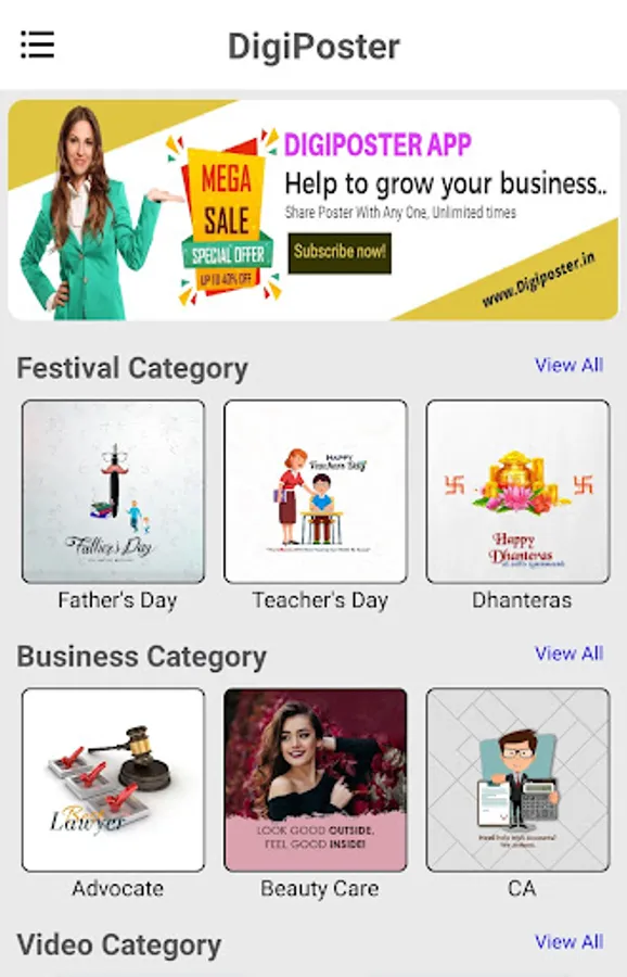 DigiPoster is Digital Marketing Platform. It is mainly useful for Business Marketing and for communication network. Ready to use Posters & Videos with Creative Layout Options for Advertisement on Social Media to Promote Business Online.