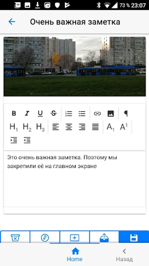 Universal application Notepad-notes with different work modes. With this application, you can deploy your service (store, event announcements, etc.), although not necessarily - you can use this App as simple notepad. App have 3 main work mode: