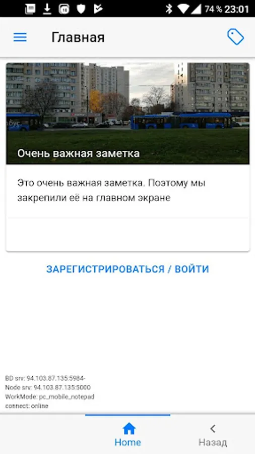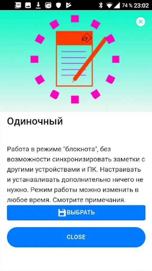 1) Standalone without synchronization. In this mode, the application works only on your phone, without the ability to synchronize data with your PC and other phones. You can create notes, add images, put labels.