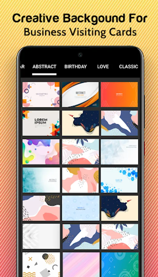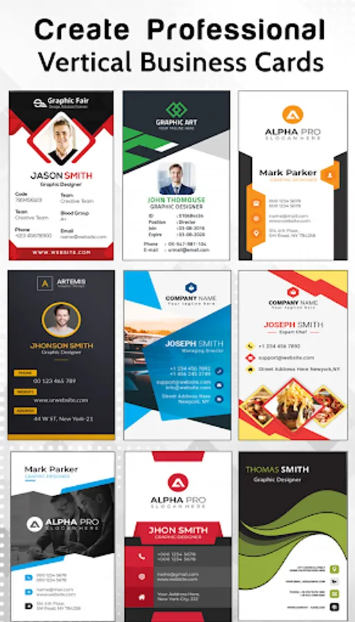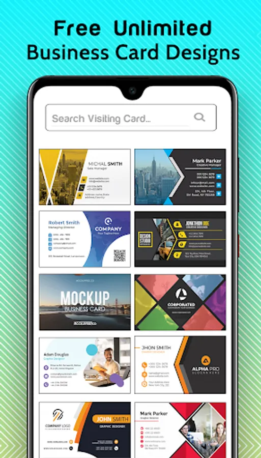 Free Visiting card maker app has 75+ creative designs. The graphic designs made with business card designs looks like visiting card created by professional graphic designer.