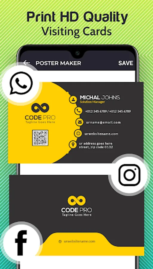 Business Card Maker also have the Key feature of Visiting Card Maker, Logo Maker, Poster Maker, Invitation Maker and Flyer Designer & Thumbnail Maker app.