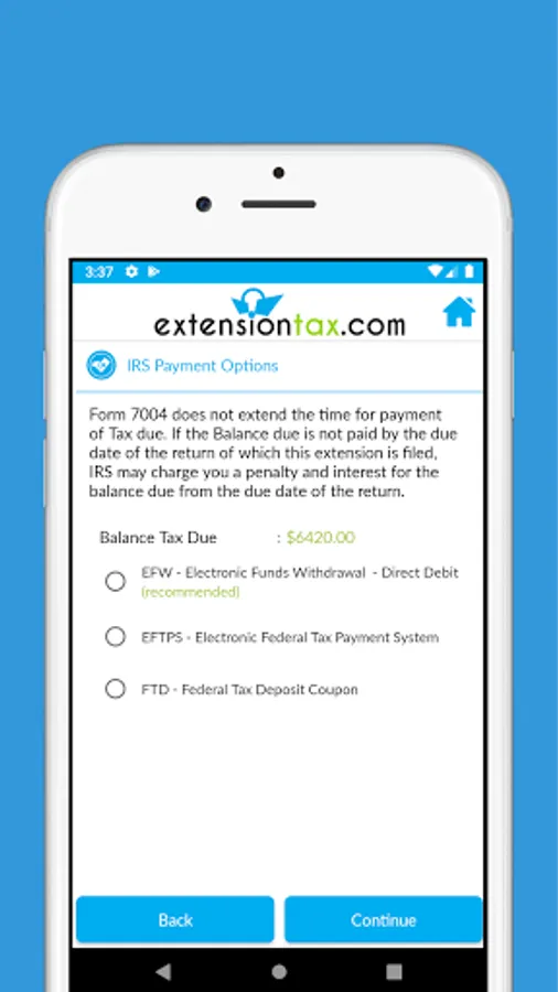 ExtensionTax.com an IRS authorized e-file website to extend the income tax due dates in simple steps and on the go. Receive instant TEXT alert on your extension return status in just minutes once IRS accepts your tax return.