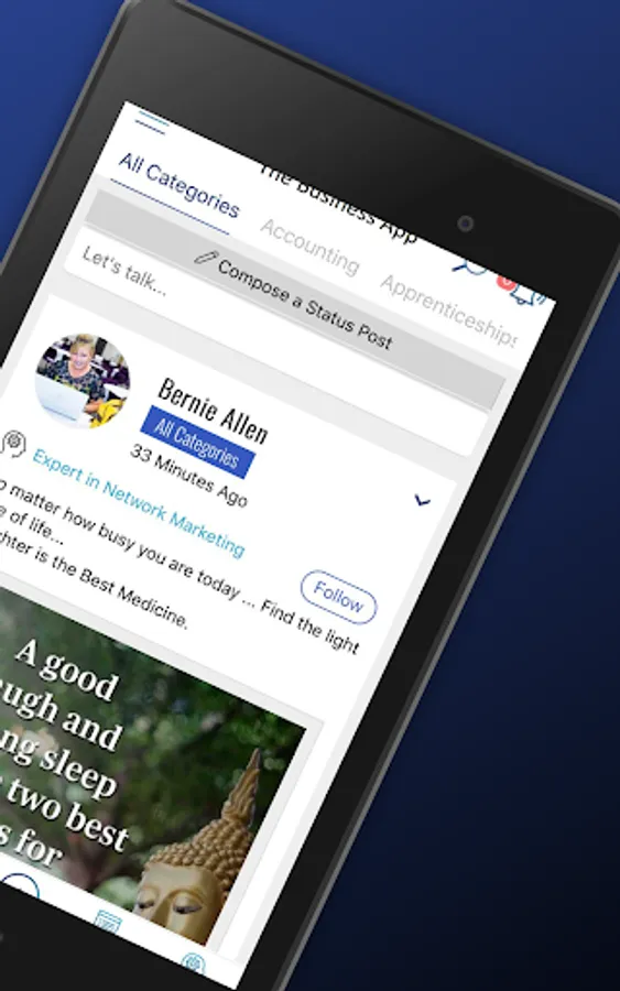 The Business App is a unique social experience designed specifically for Entrepreneurs. The features include social communication, thousands of industry related resources, access to industry leading experts and much more.