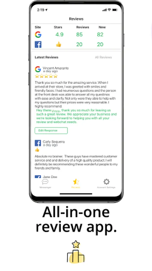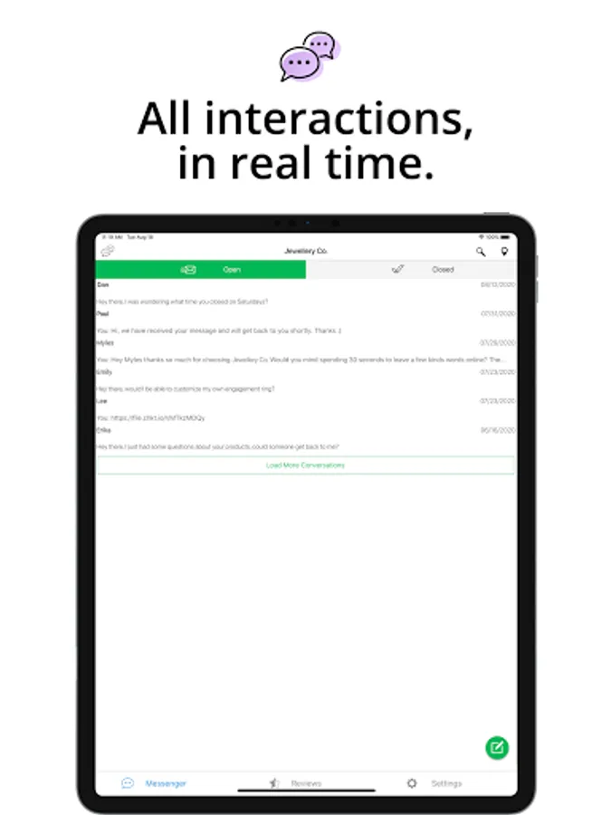 Make sales, collect reviews, provide support, and build relationships with Business Messenger Pro.