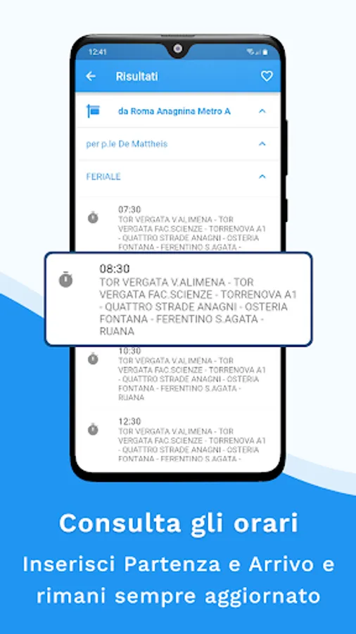 Inoltre, puoi salvare le fermate selezionate con più frequenza, in maniera tale da poterle ricercare in seguito più velocemente