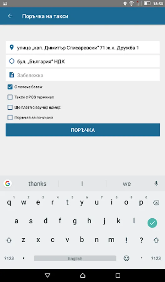 - Please note your preferences - POS terminal, car size, voucher payment, etc .;