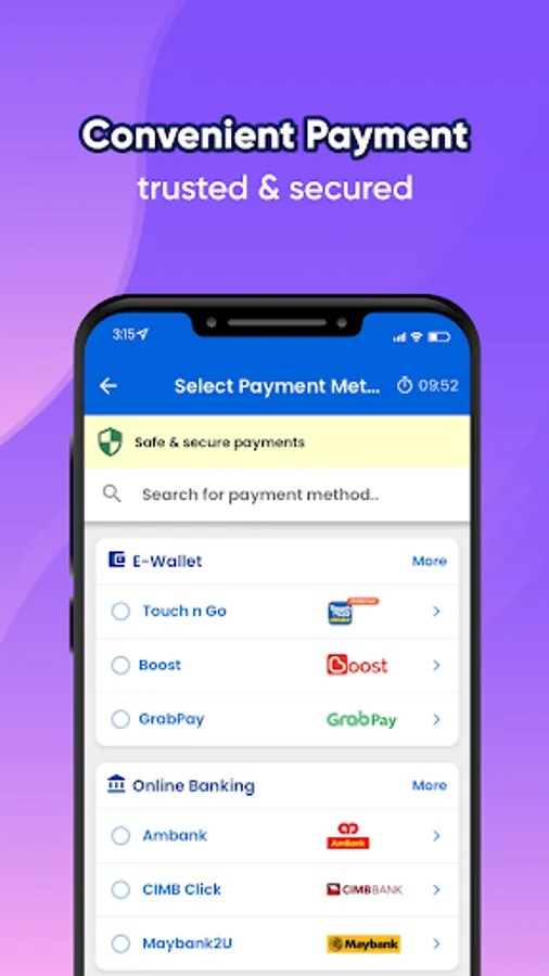 * Secured payment methods via credit / debit card, online banking, eWallet, PayPal and Alipay