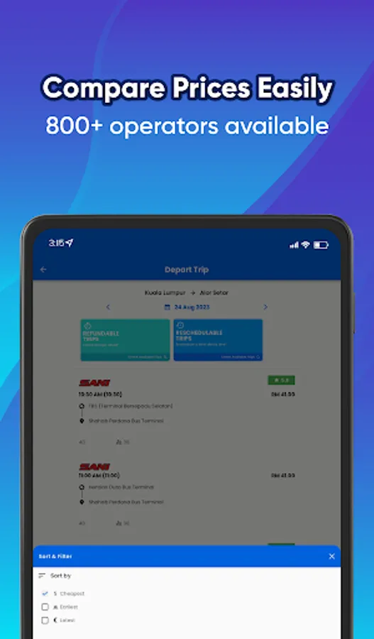 Compare and choose from many operators with different prices, departure times and many more. We emphasize in providing the best service for our beloved customers in terms of online booking service, hence we strive to offer a platform that is as user-friendly as possible.
