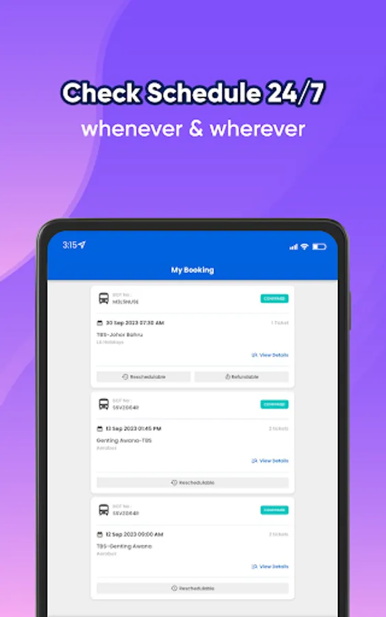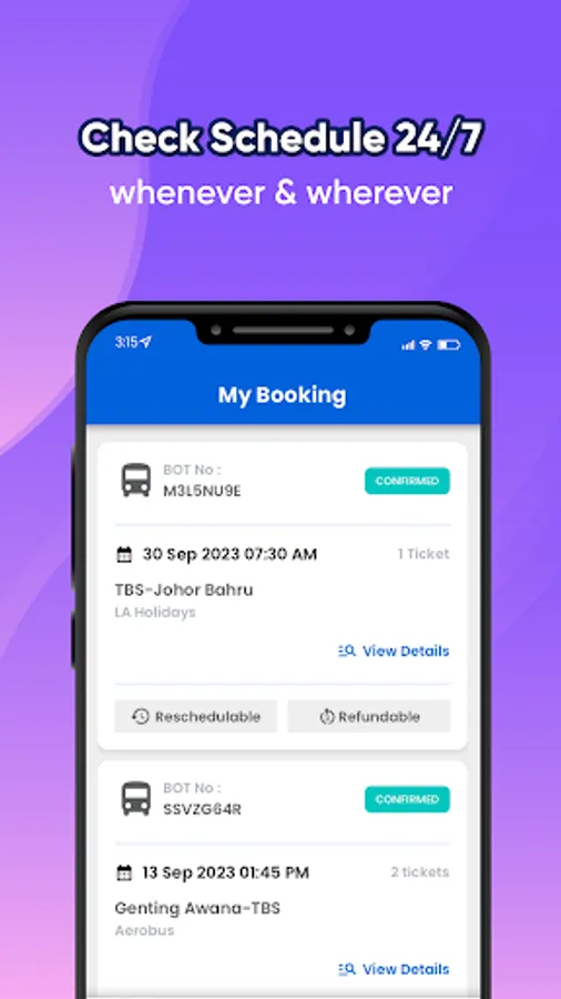 Rescheduling and cancelling your ticket are much easier now. Once you book a reschedulable and cancellable tickets, you can easily manage the trip via our member panel screen. Change of plan? No problem! Just reserve your seats in advance with ease because now, you have more flexibility when you book with BusOnlineTicket. Go flexi today!