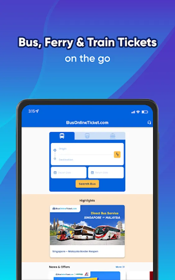 BusOnlineTicket.com is a one-stop online ticket booking portal for you to easily book bus, KTM / ETS / KLIA Express train and ferry tickets with the best prices in Malaysia and Singapore including numerous popular locations in Thailand. We have the most complete inventory with more than 200+ operators and over 8,000+ routes within these three countries.