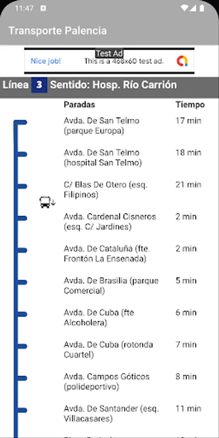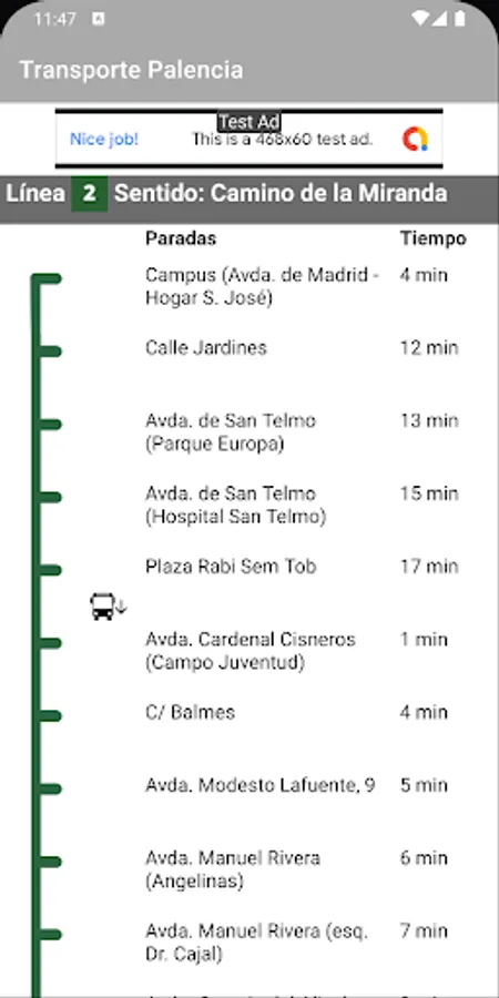 Based on the data offered online by PALBUS through its website, this app deduces the position of each displayed bus and displays it on the screen. In this way, you will not only know how much your bus has left to arrive, but also where it is at the moment, obtaining a much more realistic vision than the simple temporary data.